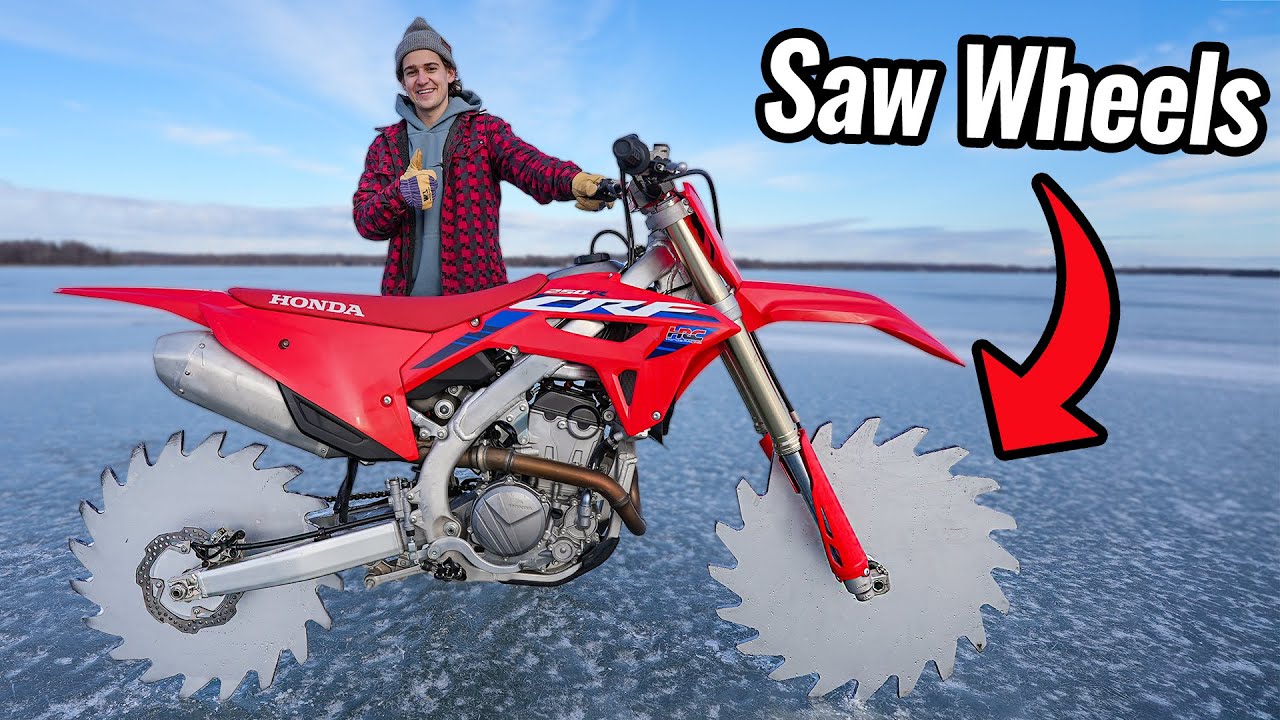 オフロードバイクのタイヤを鋸刃に交換してみた動画。