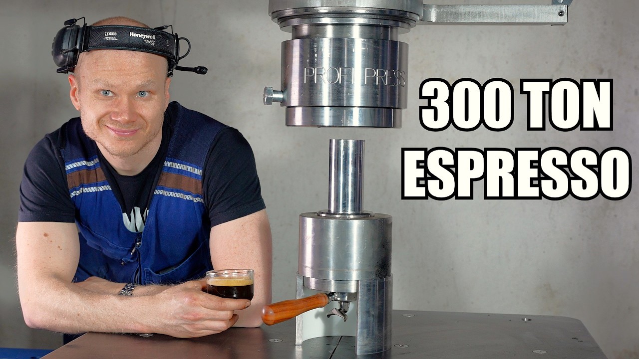 300トンの油圧プレスでコーヒー豆からコーヒーを淹れてみた動画。