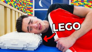 壁や家具など全てがレゴでできた部屋で一晩過ごしてみた動画。