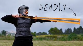 世界で最も強力なスリングショットを作ってみた動画。