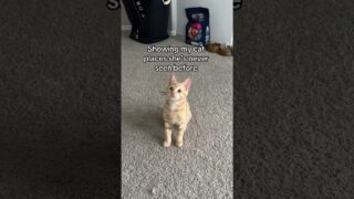 自宅内のあまり見せない場所へ連れてこられた子猫の反応がかわいい動画。
