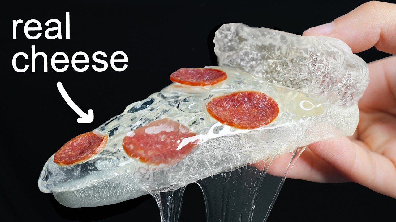生地もチーズもソースも透明なピザを作ってみた動画。