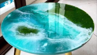 レジンとテクスチャーペーストでできた海岸が造形されたシーテーブルの作り方。