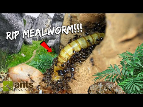 巨大な巣が形成されたアリの水槽にミルワームを入れたらどうなるのか観察してみた動画。