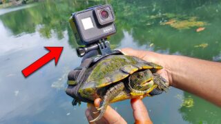 亀にGoProを装着し、水中に放ってどんな映像がとれるか検証してみた動画。