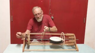 主に木材と金属でできており、弦が取り付けられた回転する本体が付いています。