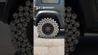 車のタイヤを空き缶で作っても走行は可能なのか検証してみた動画。