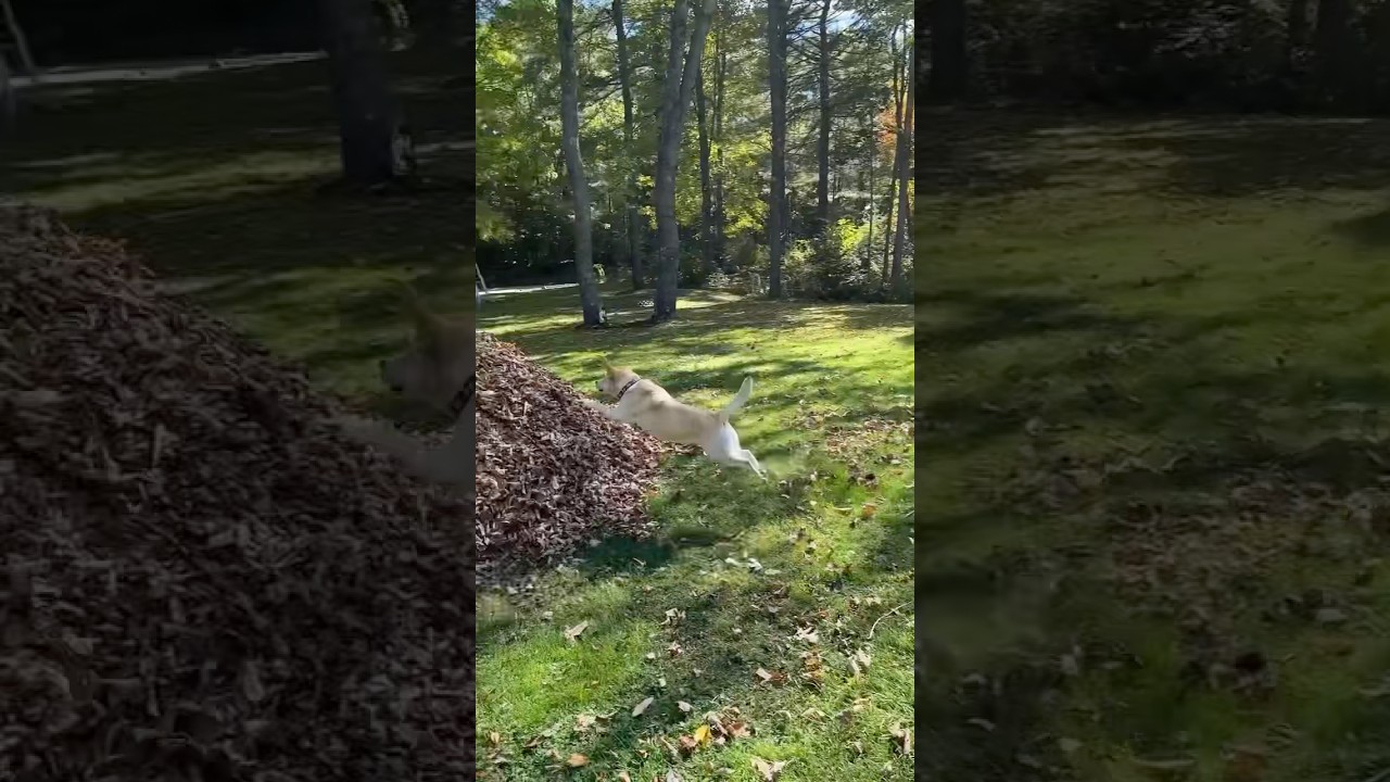 ちょっと昔に流行った枯れ葉の山に飛び込む犬の動画。