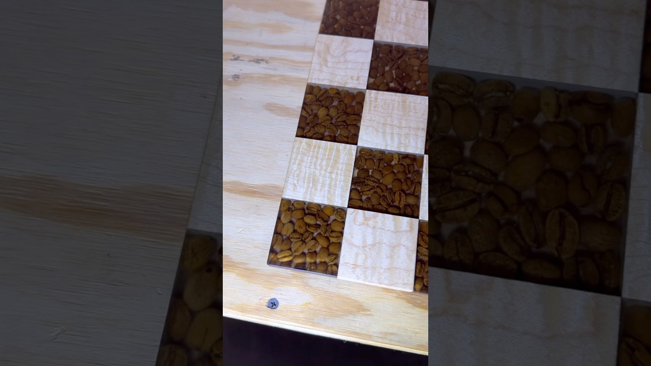 ボードにコーヒー豆を使用したチェスボードを作ってみた動画。
