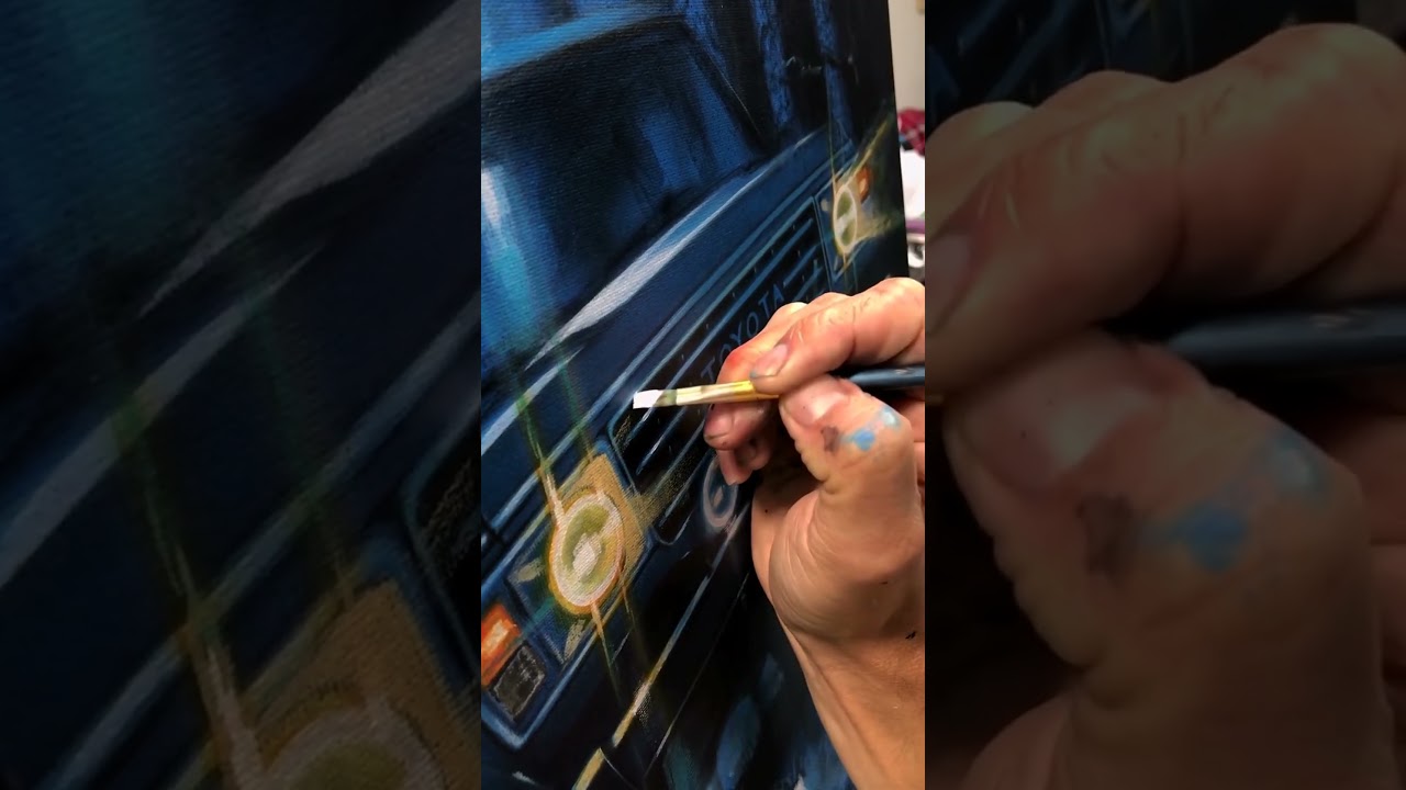 キャンバスに描く油絵の車の絵が細かすぎるショート動画。