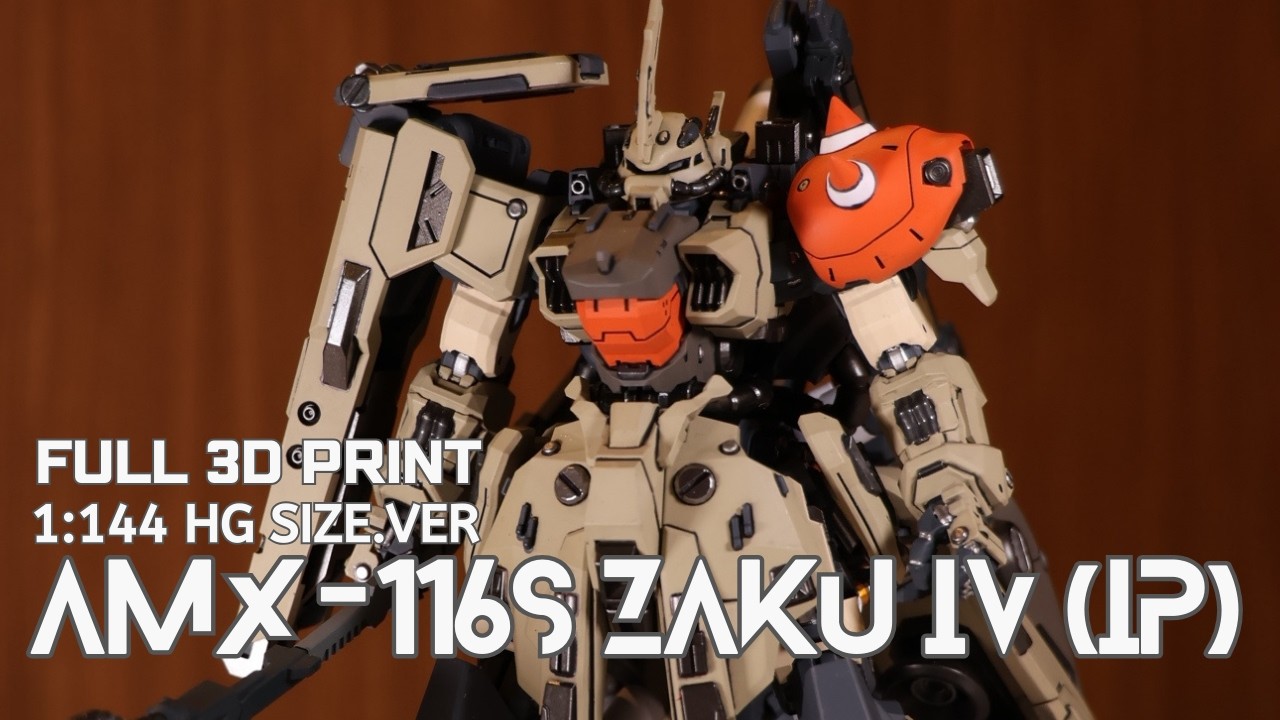 3Dプリンターで漫画「機動戦士MOONガンダム」に登場したザクIVをHGサイズで作ってみた動画。