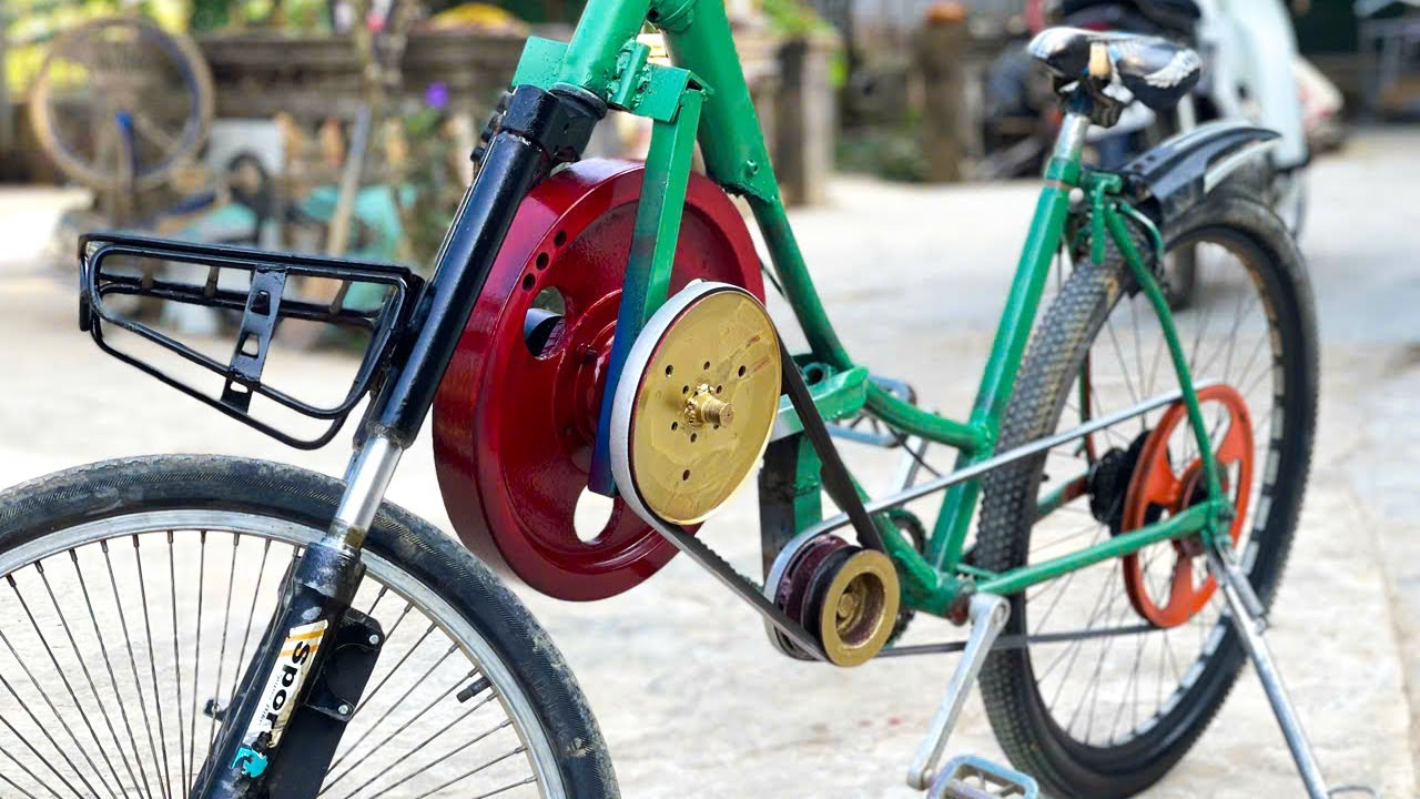 自転車にフライホイールをつけて速度アップを図る改造をしてみた動画。