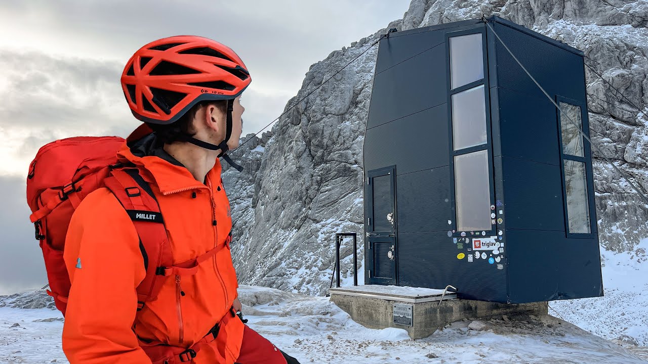 アルプスの雪山の上にある一等地の高高度の宿泊所で過ごしてみたサバイバル動画。