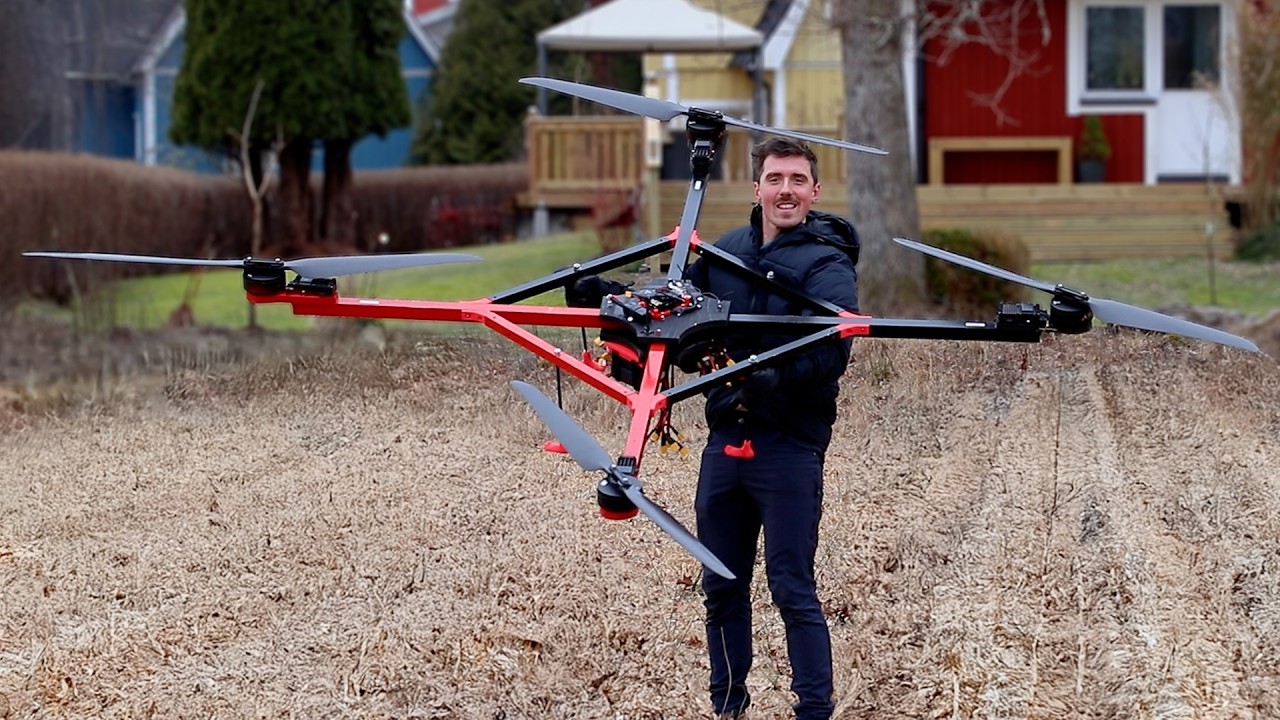 4つの強力なモーターを手に入れたので100kgの重量物も運搬できるドローンを作ってみた動画。