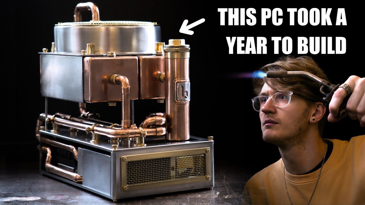 銅パイプを配管した1800年代みたいな見た目の水冷式パソコンを作ってみた動画。