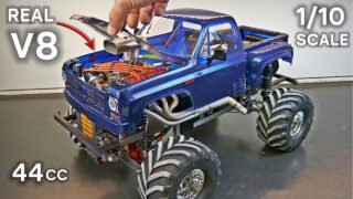V8エンジンを搭載した世界最小サイズのラジコントラックを作ってみた動画。