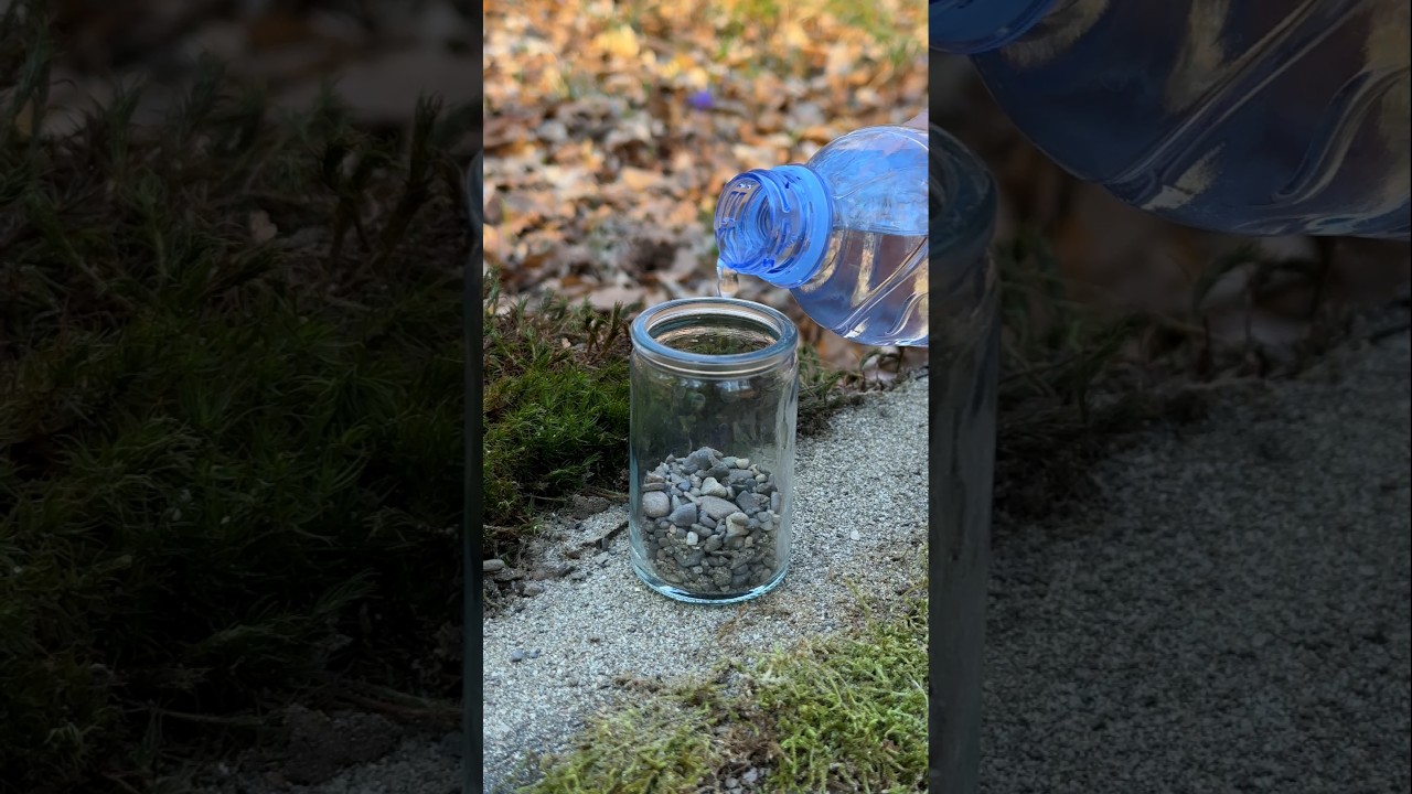 まずは小さいほうのガラス瓶に小石を入れ、水を注入。