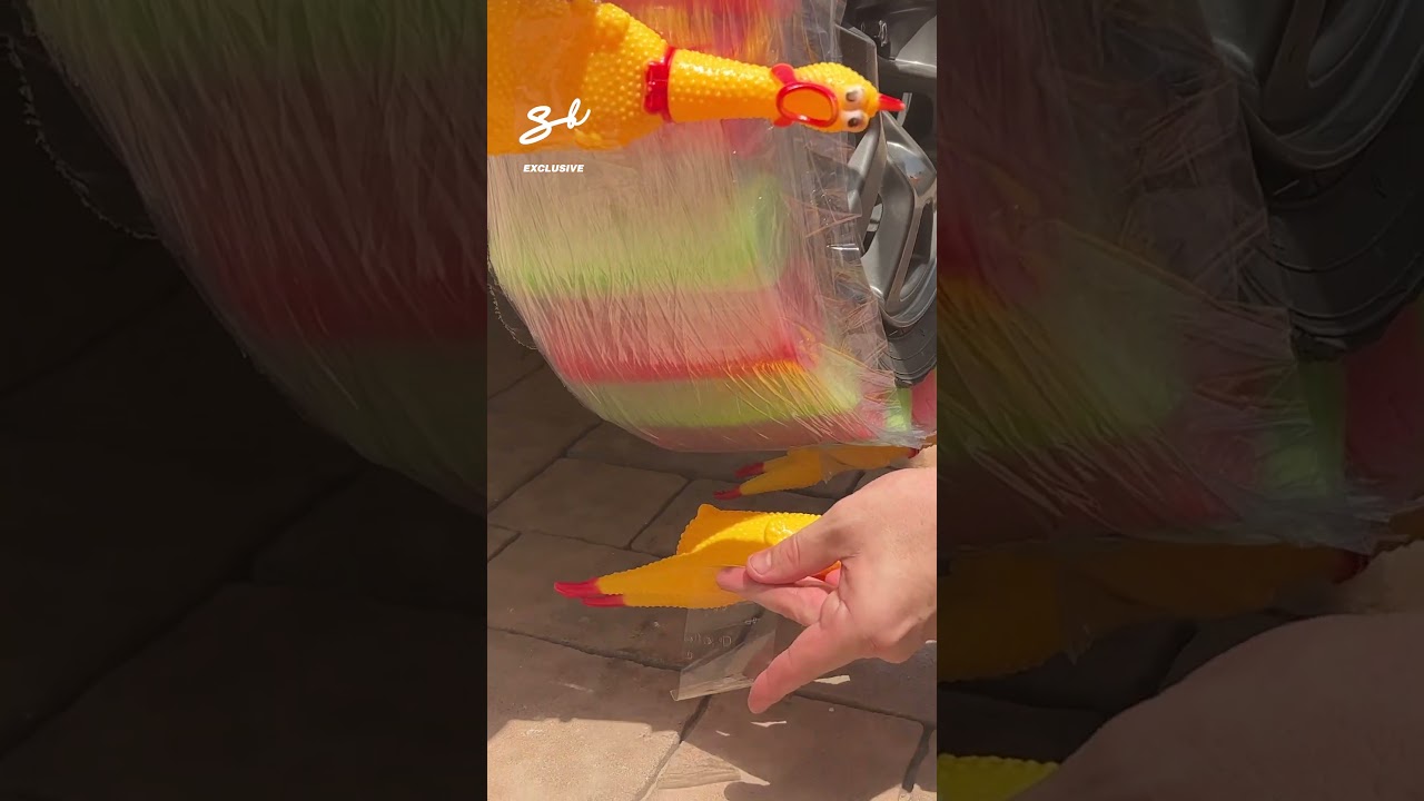 車のタイヤの代わりにびっくりチキンを巻き付けても走れるのか検証してみたショート。