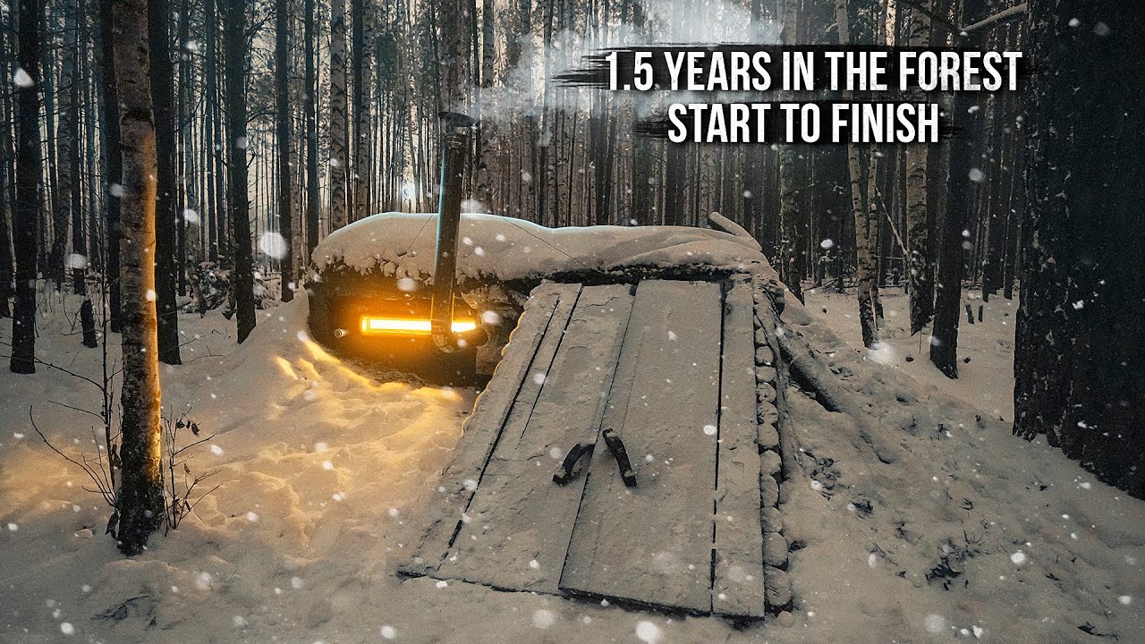 1.5 years in the forest. Building of a dugout from start to finish. 1.5 years in 1 hour.