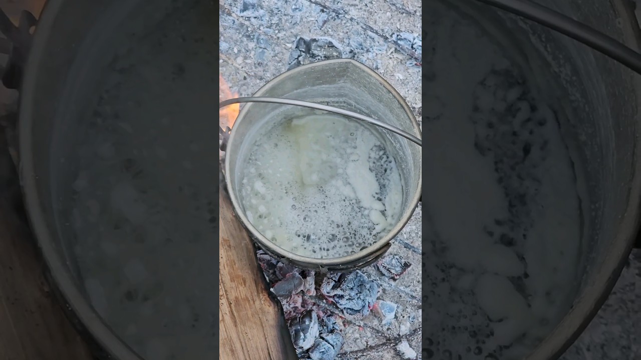 小さいキャンプ用の鍋に汲んだ海水からどれくらいの塩がとれるのか試してみた動画。