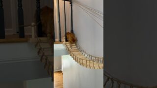 猫のために2つのバルコニーの間に橋を架けてみた動画。