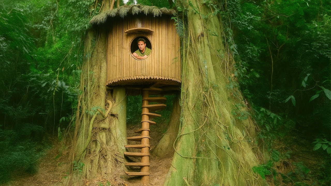 巨大なツリーハウスを建てていくブッシュクラフト動画。
