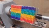 次に木材から瓶の周囲より一回り大きい円を描き、これをカット。