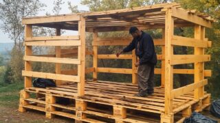 森の真ん中でパレットを使って121日間で家を建ててみた動画。
