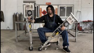 タイヤがついてる多機能すぎる松葉杖を作ってみた動画。