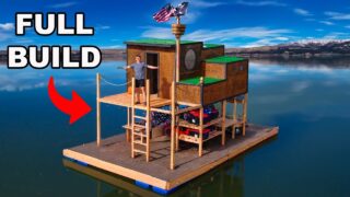ミズーリ川を航行するために3階建てのいかだを作ってみた動画。