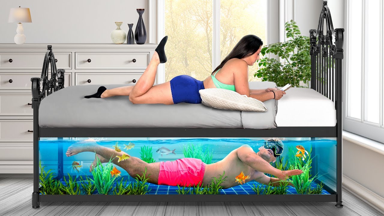 大家からペットを隠すためにベッドを水槽にしてみた動画。