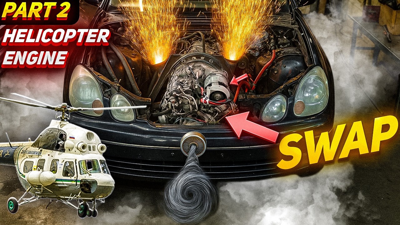ヘリコプターのエンジンをレクサスに乗せてみた動画。