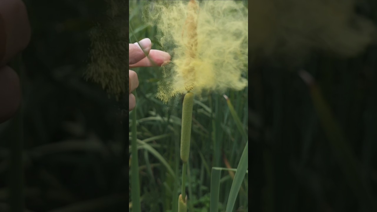 まずは夏の初めごろにガマの穂から花粉を採取。