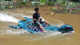 腐ったジェットスキーからウミガメ型のボートを作ってみた動画。
