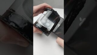 隙間を塞ぐとともに中へ水を入れ、レンズとして機能するよう加工します。