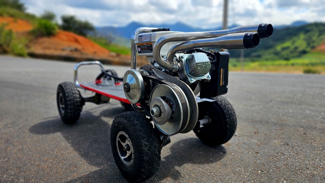 スケートボードに乗せるのは3.5馬力程度の小さなエンジン。