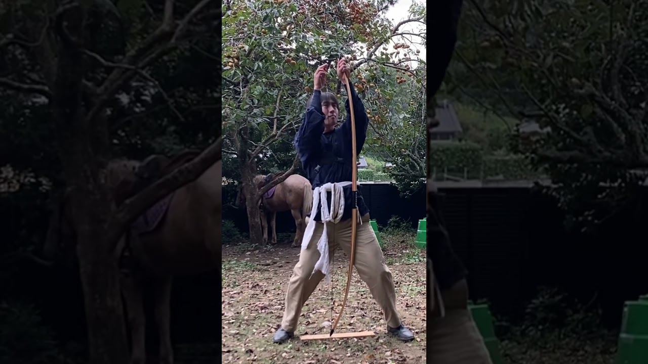 もののけ姫のアシタカみたいな体重をかけて弓を張る方法は可能なのか検証してみた動画。