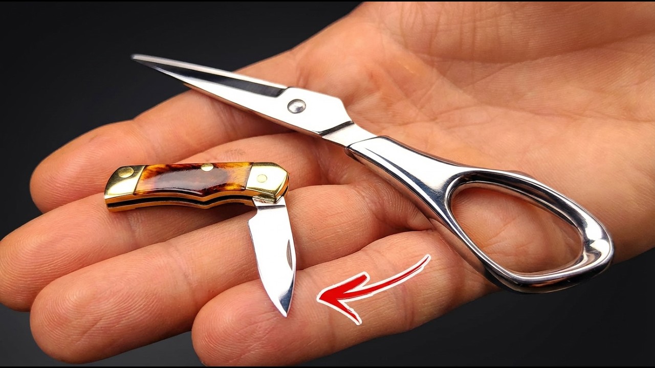 壊れたハサミから小さな折り畳みナイフを作ってみた動画。