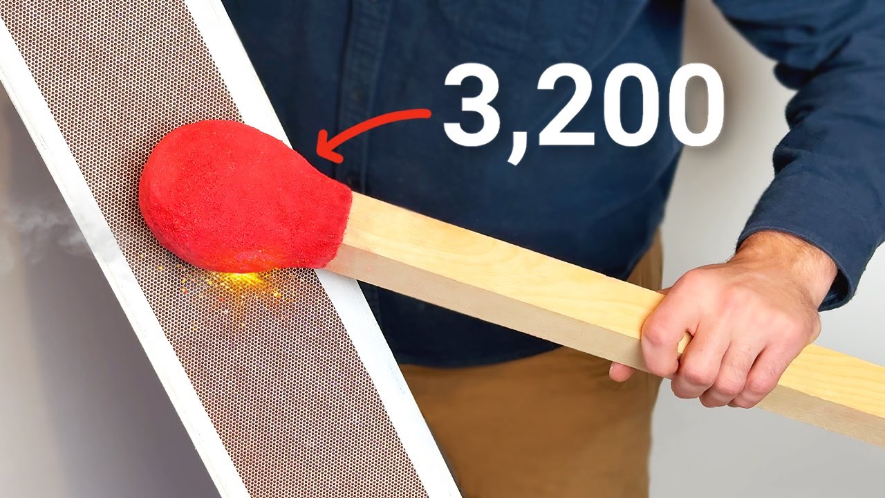 3,200本のマッチを砕いて巨大なマッチを作ってみた動画。