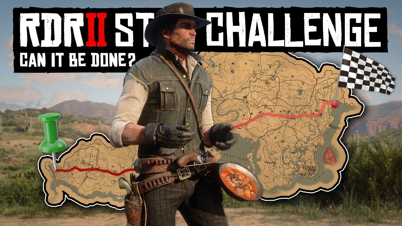 そんなRDR2でマップの最西端から最東端までシチューを落とさずに歩くチャレンジ。