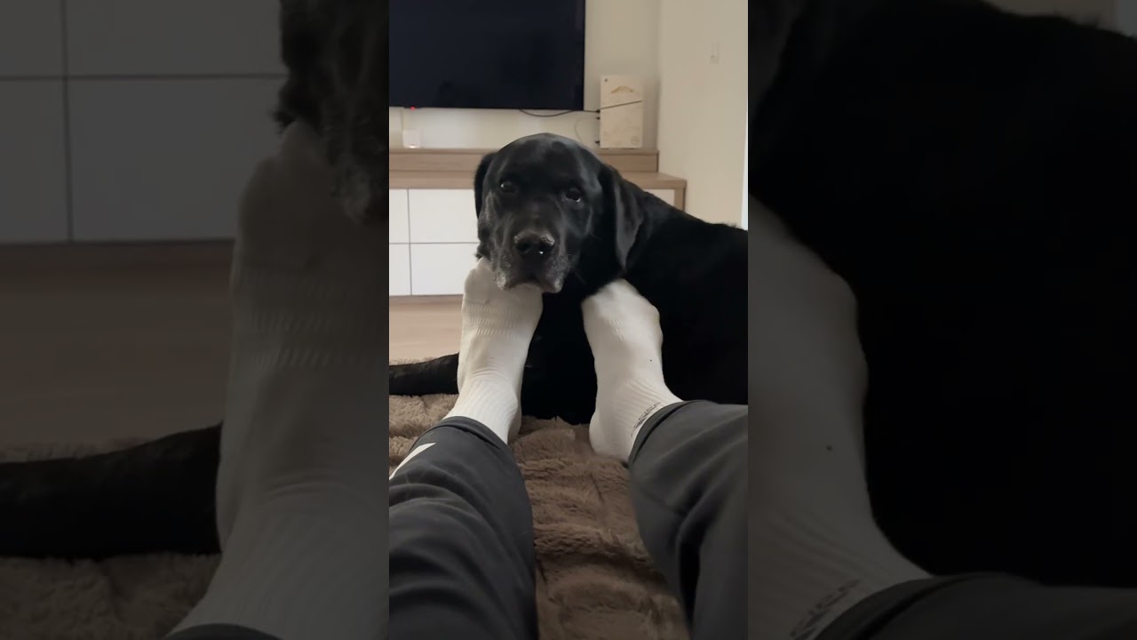 なぜなら左足で犬の頭を支え、右足で犬をなでるから。