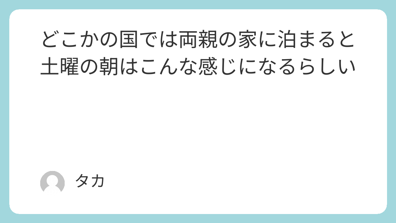 どこかの国では両親の家に泊まると土曜の朝はこんな感じになるらしいショート。