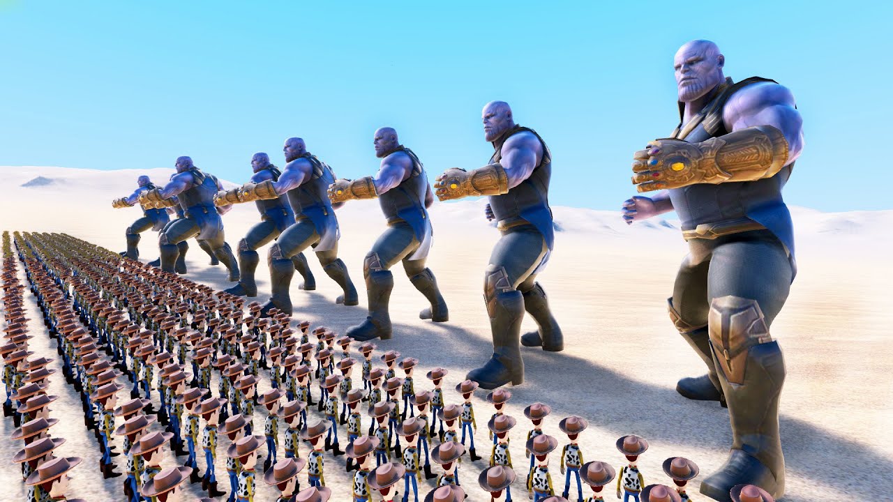 そんなゲームで眺めるMCUサノス10人対トイストーリーのウッディ5000人の戦い。